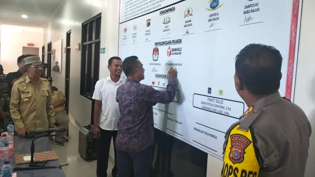 Galeri Foto Ketua Bawaslu Sabu Raijua, Markus Haba, saat menyampaikan sambutannya pada kegiatan Deklarasi Kampanye Damai Pemilihan 2024 Penyerahan SK Penetapan Calon Bupati dan Wakil BUpati Sabu Raijua oleh Ketua KPU Kepada Bawaslu Penandatanganan Deklarasi Pilkada Damai First page « Pertama Halaman sebelumnya ‹ Sebelumya Halaman 1 Halaman sekarang 2
